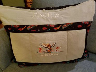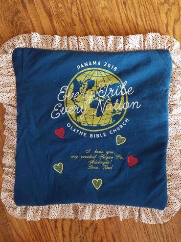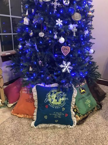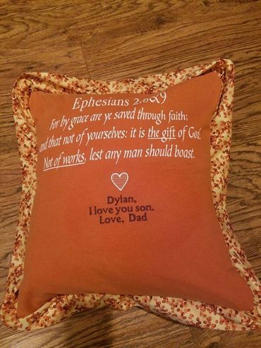 Pillows are created from loved ones' clothing and/or pictures can be printed or photostitched.